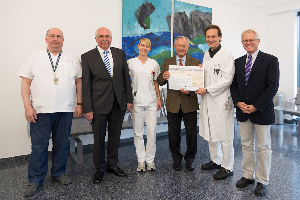 The charitable foundation Manfred-Roth-Stiftung was named after Manfred Roth, an entrepreneur from Fürth who founded the supermarket chain Norma and passed away in 2010. Since 2014, the foundation’s chairman, Dr. Polster, has already presented three cheques, each worth over 20,000 euros, to doctors and researchers at Universitätsklinikum Erlangen in memory of his late friend. The first was presented to the Department of Medicine 1 – Gastroenterology, Pneumology and Endocrinology in June 2014 to establish a scholarship for nutrition research, the second to the Department of Medicine 2 – Cardiology and Angiology in December 2014 to support cardiology research, and the third to the Department of Otorhinolaryngology – Head and Neck Surgery in February 2015 for special auditory training. All three of the projects that have been funded are running very successfully. A fourth donation of 50,000 euros was made in October 2015 and will allow the Department of Medicine 3 – Rheumatology and Immunology to start offering whole body cryotherapy.