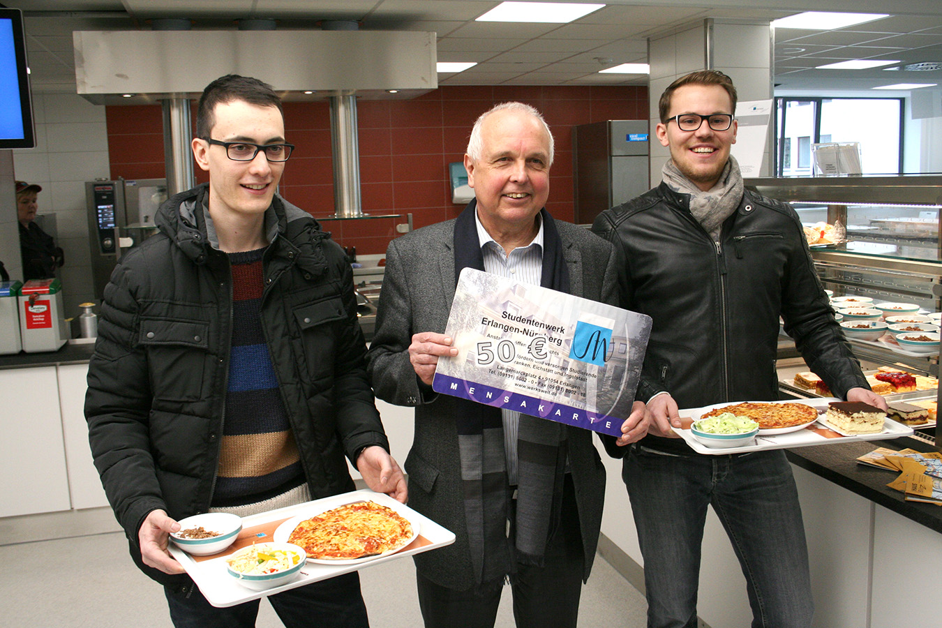 The recently reopened cafeteria on Langemarckplatz in Erlangen has already welcomed its first guests: Simon Bauch and Aaron Döhler regularly eat at the Studentenhaus. The two Master’s students are impressed with the choices on offer and recommend the pizza.