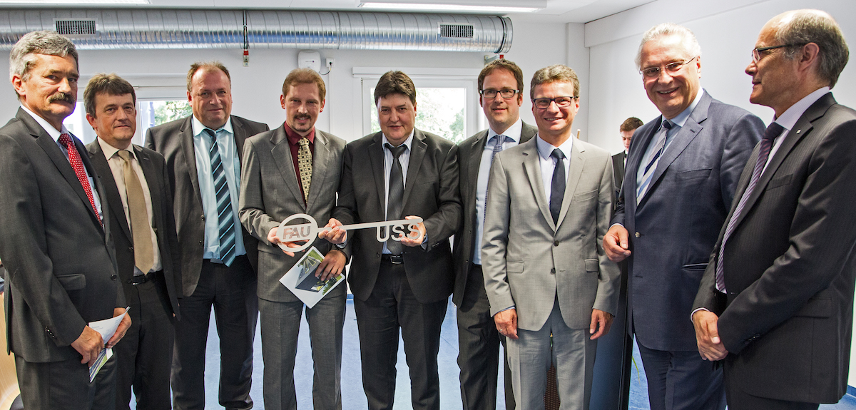 With the new laboratory building at the Biotechnology Research Centre at Ulrich-Schalk-Straße, three chairs at FAU are moving to ultramodern premises: the new location offers 882 square metres of research space for teams from Medical Biotechnology, Biomaterials and Endogenous Geodynamics. For the inauguration on 8 July, FAU Vice President Prof. Dr. Günter Leugering welcomed Bernd Sibler, member of the Bavarian parliament and State Secretary at the Bavarian State Ministry of Education, Science and the Arts, Joachim Herrmann, member of the Bavarian parliament and Bavarian Minister of the Interior for Construction and Transport, Dr . Florian Janik, Mayor of Erlangen, Prof. Dr. Peter Greil, Dean of the Faculty of Engineering, Prof. Dr. Wolfgang Kießling, Vice Dean of the Faculty of Science, Planning Director Dieter Maußner from the State Construction Office of Erlangen-Nuremberg and numerous guests.