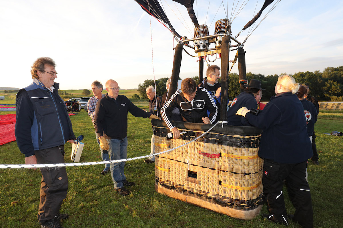 ‘The Faculty of Engineering is really taking off today,’ FAU President Joachim Hornegger said in his commemorative speech at the balloon’s launch in the early hours of 2 July 2016 at the small Dobenreuth airfield on the doorstep of Fränkische Schweiz. Normally researchers feel like taking flight when they are faced with bureaucratic hurdles or an experiment that didn’t quite go to plan, he joked. ‘It’s not everyday that you come across a Faculty that travels by balloon,’ he said. After a speech thanking the sponsor, who wishes to remain anonymous, the president christened the balloon with the registration D-OFAU ‘Friedrich-Alexander’. ‘I hope that the FAU balloon’s journeys will always be safe and successful – like the journey of the Faculty of Engineering since it’s foundation,’ Professor Hornegger concluded before taking off in the new balloon with Prof. Dr. Peter Greil, Dean of the Faculty of Engineering, and Prof. Dr. Karl-Ernst Wirth, speaker of the Department of Chemical and Biological Engineering. ‘Up, up and away!’ said the Dean, who was delighted at the unusual birthday gift which will mean that the Faculty is visible even in the skies.