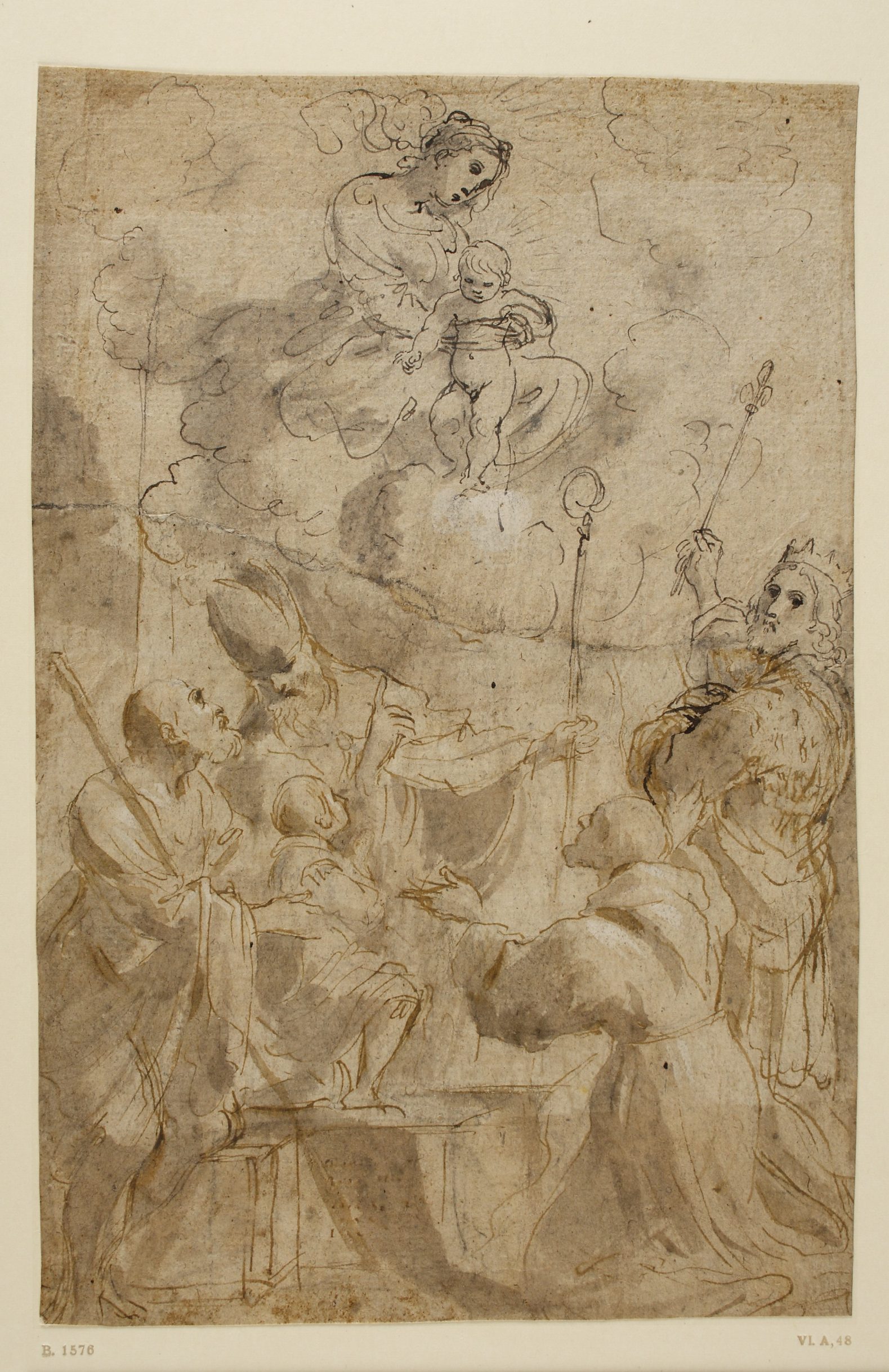Giovanni Francesco Barbieri (Il Guercino), preliminary drawing for A Donor Presented to the Virgin, c. 1615. In light brown and dark brown ink with grey-brown wash, 28.6 x 18 cm, FAU Collection of Prints and Drawings, Inv. No. B 1576.