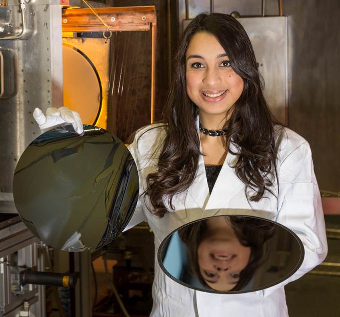 Over several days, the diamond foils are produced in a test reactor in which a 40-micrometre thick diamond layer – approximately the thickness of a human hair – is grown on a silicon disc with a diameter of 30 centimetres. The diamond foils are produced in a low-pressure atmosphere of hydrogen and two percent methane under wires which are heated to 2000 degrees Celsius. After the coating process, a short pulse laser is used to introduce a circular fracture site with a diameter of 28.5 centimetres into the diamond surface. This makes it possible to separate the deposited layer as a very smooth diamond foil from the silicon substrate.