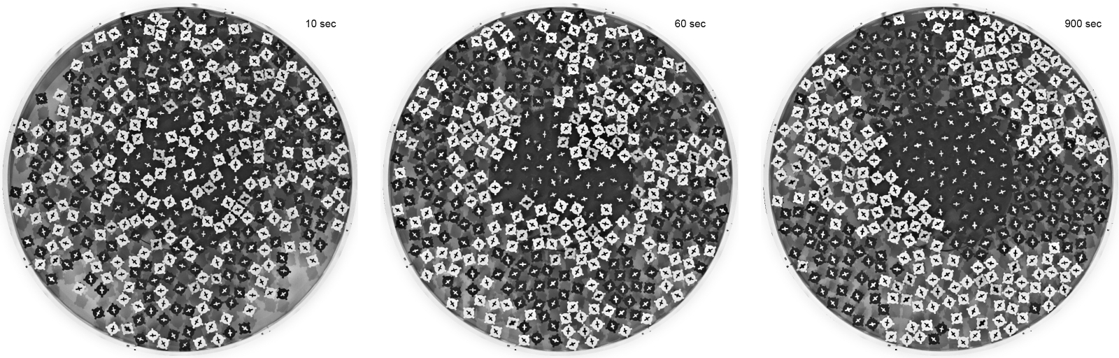 Numerous repetitions show that the results of the experiment are very robust – the rotors had formed mostly three or four separate domains after 1000 seconds of vibration. Simulations on the basis of Langevin equations always show complete demixing into two groups. ‘The fact that the variations during the tests were greater than those in the simulation could have been caused by imperfections in the shape of our rotors printed using 3D printers and by the influence of gravity as we aren’t able to align the vibrating table in a completely horizontal position,’ explains Prof. Dr. Michael Engel from the Institute of Multiscale Simulation at FAU.
