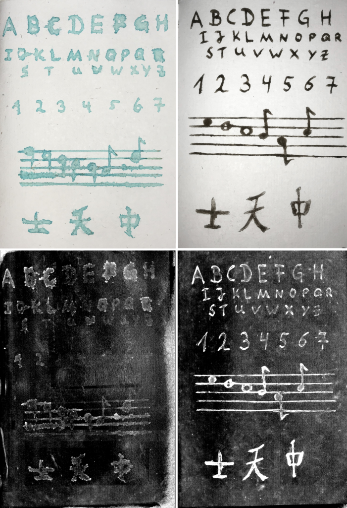 how well various inks are depicted. Inks containing metal are clearly visible. It is shown