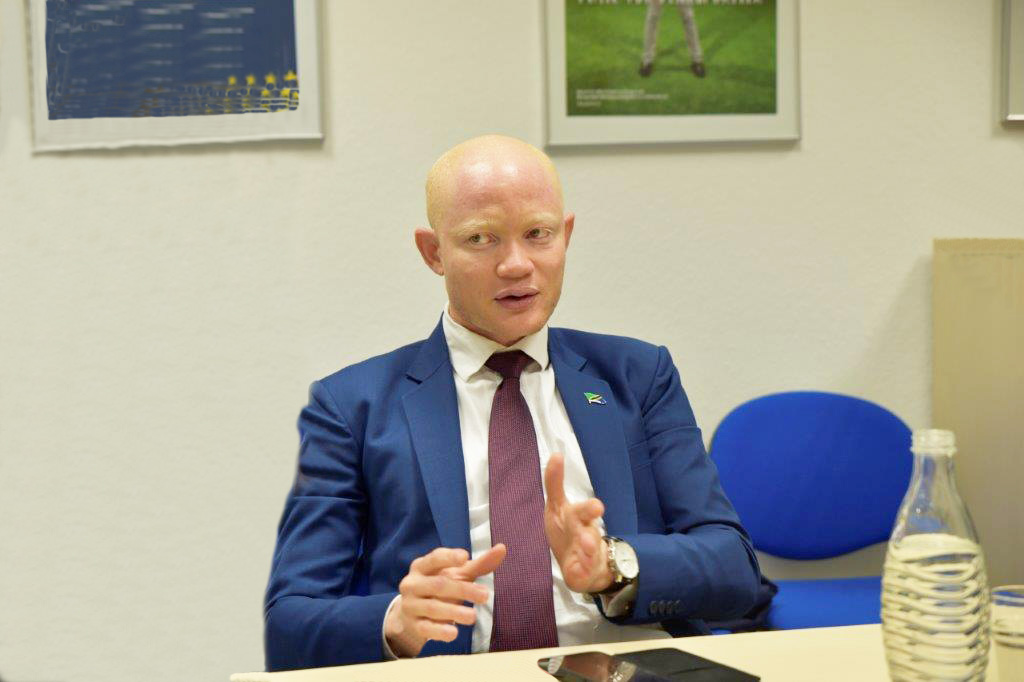 In 2010, a law was passed in Tanzania protecting people with disabilities. Since then, albinism has been legally recognised as a disability and those affected are officially protected by the government. However, serious violations of human rights are still widespread. ‘Tanzania is three times the size of Germany, but, like many other countries in Africa, it has a poor infrastructure. Attacks on people with albinism tend to occur in small, remote communities where police cannot arrive quickly enough and most people are not aware of the medical disorder behind the phenomenon’, explains the Ambassador. It is therefore necessary to continue raising awareness of the fact that the bones of people with albinism do not have magical powers. Here in Germany, Possi’s pale colouring is not particularly unusual. However, in his home country he was often the target of discrimination and bullying, especially in childhood. ‘The children from my village whom I played with every day accepted me the way I am. However, the problems started when I met children from another neighbourhood’, explains Possi. ‘Luckily I was never shy, I was always self-confident and enough of a fighter to know what my rights and options are.’