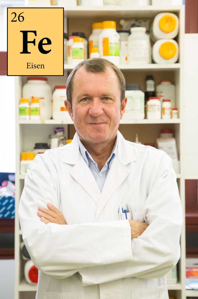 On the other hand, iron is toxic as a free ion; too much iron can be deposited in various organs and can cause heavy damages. Therefore, it is necessary that the intake of iron is very well regulated. One of my research interests is to understand how this regulations works, or what causes certain diseases to interfere with the interaction between the liver, where important messengers are produced for the regulation of iron intake, and the intestine, where iron resorption occurs. This is very exciting and that´s the reason why iron is one of my favourite elements.”