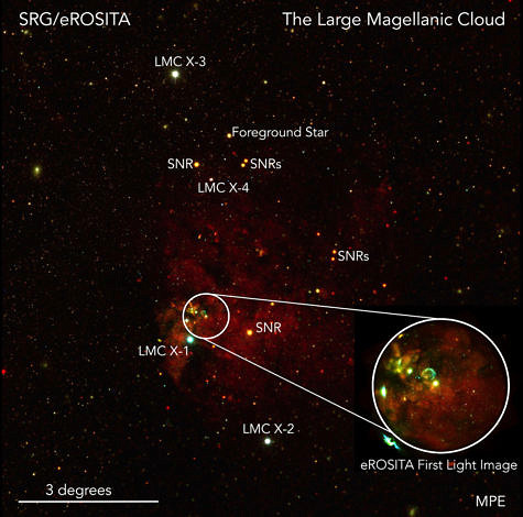 The first all-sky survey conducted by eROSITA is approximately four times deeper than the previous map of the entire sky in the x-ray band produced by the ROSAT telescope roughly 30 years ago, and has detected roughly ten times as many sources: approximately as many as have been discovered until now by all previous x-ray telescopes together. Whilst most classes of astronomical objects emit x-rays, the hot and energetic universe looks quite different than through optical or radio telescopes. Outside our home galaxy, most eROSITA sources are active cores of galaxies at cosmological distances where supermassive black holes accrete matter. Then there are also galaxy clusters which appear as extended x-ray halos, shining due to the hot gas included in the huge concentrations of dark matter. The map of the entire sky also unveils the smallest details of the structure of the hot gas in the Milky Way as well as the circumgalactic medium surrounding it. Understanding the properties of this medium is crucial for us to understand the history of the creation of our universe. The eROSITA x-ray map shows even more, however: Stars with strong, magnetically active hot coronae, x-ray binaries, which include neutron stars, black holes or white dwarves, and spectacular remnants of supernovae in our own and other nearby galaxies such as the Magellanic Clouds.