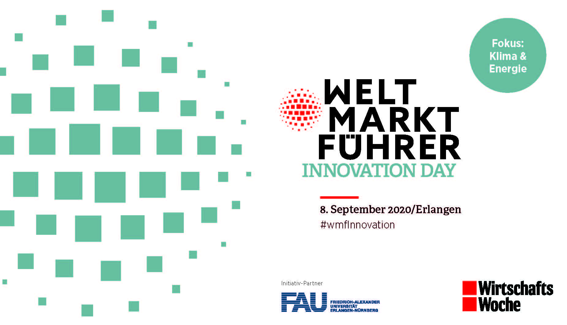 FAU is a partner of the ‘Global Market Leaders Innovation Day’ initiative run by the German financial magazine WirtschaftsWoche, which is to be held in Erlangen on 8 September 2020. Renowned researchers and young talents from FAU will present their research and ideas on the main focal topic ‘energy and climate’.