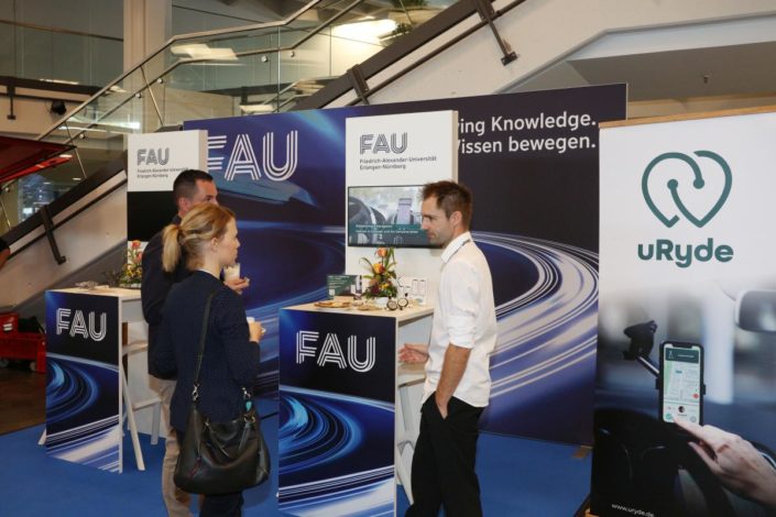 FAU booth that offered space, e.g. for the start-up uRyde to demonstrate their app. (Image: FAU/Kurt Fuchs)