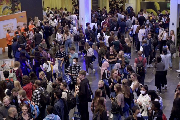 Lecture period at FAU gets off to a flying start A total of 38,727 students have registered for winter semester 2022/23 (as of October 14, 2022). This is an increase compared to the previous year. We are particularly pleased that the number of students starting their first semester at a German university has risen by 7.9 percent.