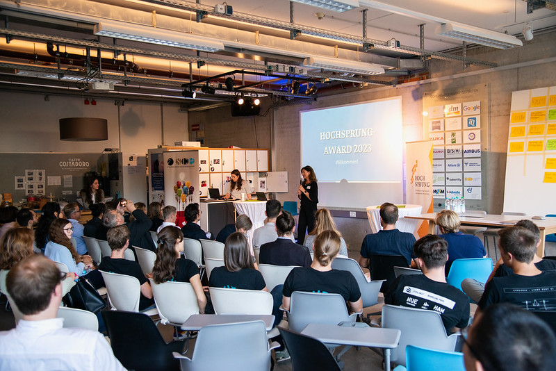 The aim of the HOCHSPRUNG Award is to provide funding to startups at Bavarian universities. 26 startups from all over Bavaria entered their projects for the HOCHSPRUNG Award. In the final, six teams pitched their idea in front of a jury and an audience at Hochschule München.