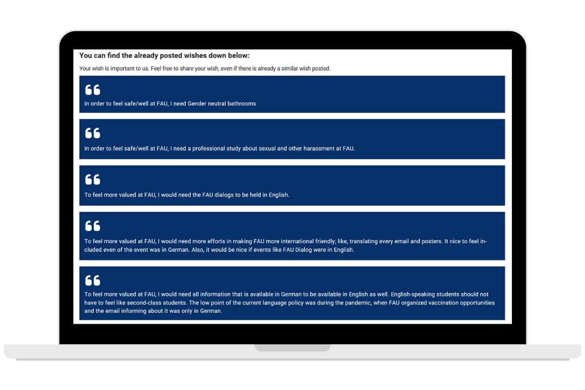 Melanie: Everyone! Regardless of whether they are students or FAU staff members, it is important for us that everyone at FAU has their say. This is the reason why there is also a Wall of Wishes in English.