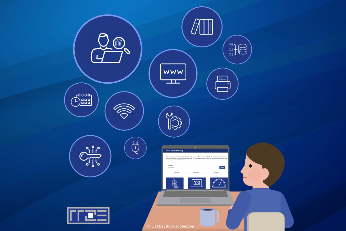 The website www.services.rrze.fau.de (in German) gives users an overview of all the services offered by RRZE. Depending on the service, there is a brief description and links leading to further information, for example to the application, to instructions and to video tutorials.