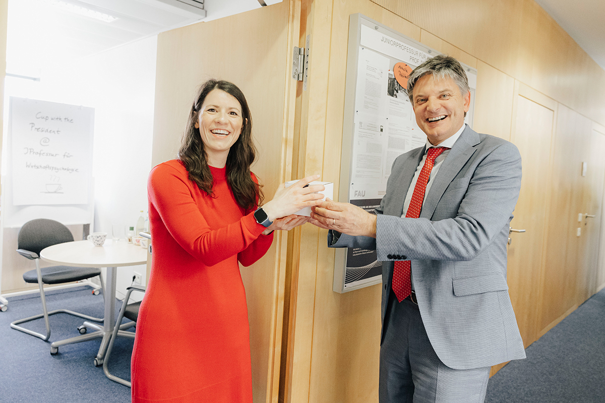 In episode 24, the President visits Prof. Dr. Lisa Handke. She holds the Professorship for Business Psychology at FAU.