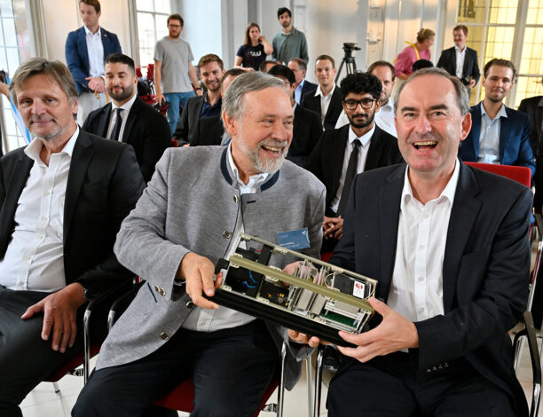 In addition to the Chair of Computer Architecture and FAPS at FAU, the Center for Telematics e.V. (ZfT) at the University of Würzburg and the German Aerospace Center (DLR) in Oberpfaffenhofen are involved in the project, together with numerous partners from industry. The FORnanoSatellites project was launched on June 1, 2025 and the official presentation of the funding confirmation by State Minister Hubert Aiwanger to Prof. Fey took place last Monday. FORnanoSatellites is a project that is part of the FOR initiatives of the Bavarian Research Foundation that supports major alliances between science and industry.